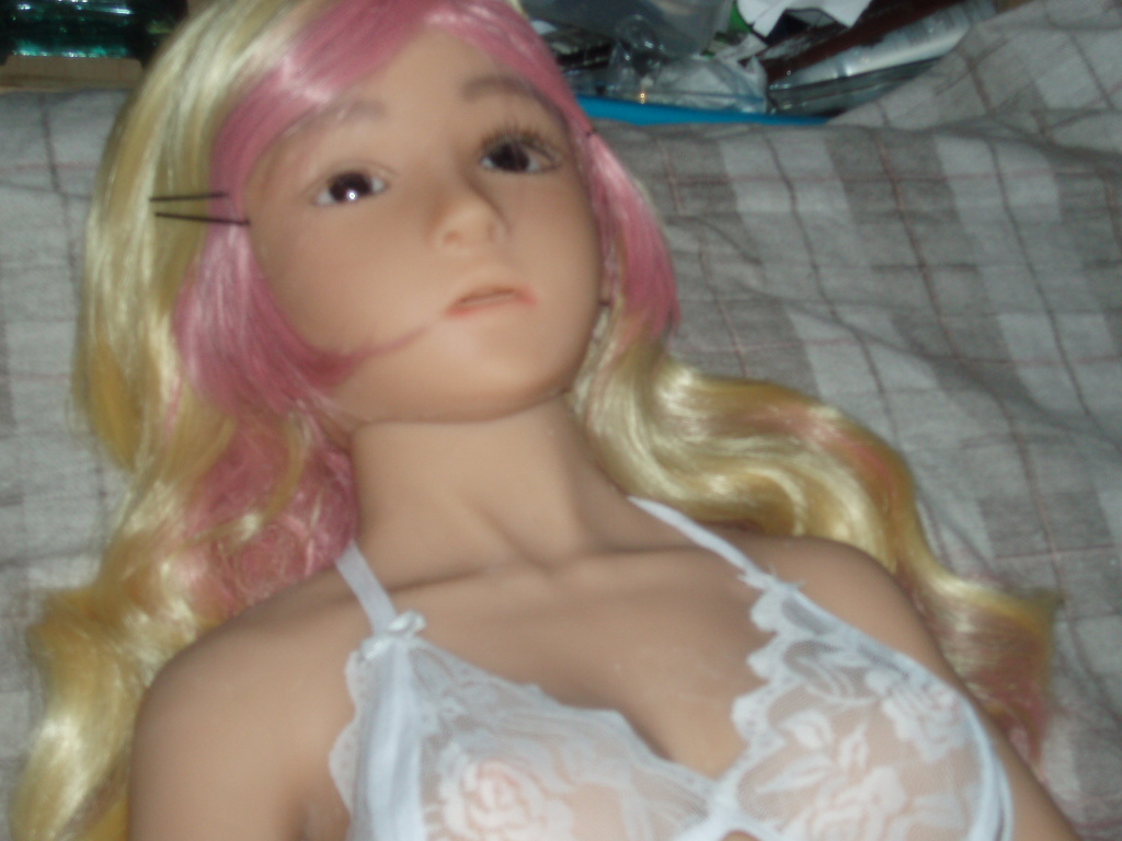 The doll came well packed from Hong Kong (Sili Dolls HQ), with lots of protective foam and slabs (no pellets thanks the Force). Suki arrives naked, with full makeup and fake acrylic nails on her fingers and toes. Included in the box, Sili Dolls include her wig – a blonde and pink long wig – , a bullet vibrator with sound, a cleaner bottle, some lingerie pieces, and a pack of 6 latex condoms. After the unboxing, I cleaned up my new sex slave and got her ready for testing…
